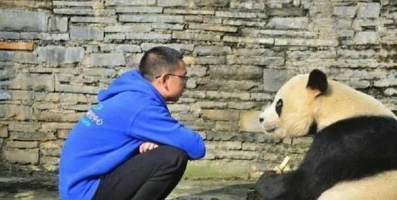 大熊猫鹏鹏的故事更戳心。鹏鹏因为白内障,眼睛看不清,奶爸唐诚微就格外用心照顾它。鹏鹏1999年出生,性格特别温和,哪怕长大了,唐诚微还能坐它旁边,陪它“聊天”。有时候,唐诚微会轻轻摸着鹏鹏的头,鹏鹏就安静地趴着,像个听话的大宝宝。
